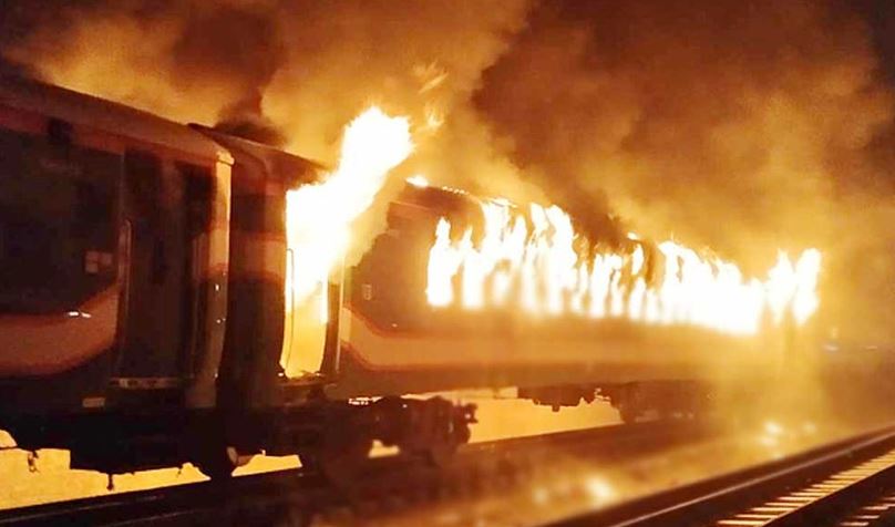 এর আগে, শুক্রবার রাতে রাজধানীর কমলাপুর রেলস্টেশনের পাশে গোপীবাগ এলাকায় বেনাপোল এক্সপ্রেস ট্রেনে আগুন দেয় দুর্বৃত্তরা। আগুনের খবর পেয়ে ফায়ার সার্ভিসের আটটি ইউনিট ঘটনাস্থলে পৌঁছে দেড় ঘণ্টা চেষ্টা চালিয়ে আগুন নিয়ন্ত্রণে আনে। আগুনের ঘটনায় চারজনের মরদেহ উদ্ধার করা হয়।