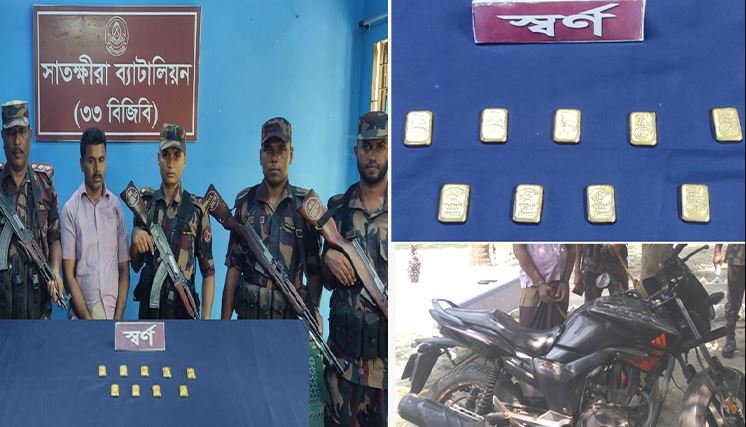 এ সময় বিজিবি সদস্যরা সেখান থেকে উক্ত স্বর্ণ চোরাকারবারিকে একটি মোটরসাইকেলসহ আটক করে। পরে তার দেহ তল্লাশি চালিয়ে বিশেষ কায়দায় লুকিয়ে রাখা ৯ পিস স্বর্ণের বার জব্দ করা হয়। যার ওজন ১ কেজি ৪৪ গ্রাম। জব্দকৃত স্বর্ণের বার ও মোটর সাইকেলের বাজার মূল্য ১ কোটি ৩ লাখ ৬০ হাজার ৩২০ টাকা। প্রেস বিজ্ঞপ্তিতে তিনি আরো জানান, আটককৃত স্বর্ণ চোরাকারবারিকে সাতক্ষীরা সদর থানায় সোপর্দ এবং স্বর্ণের বারগুলো ট্রেজারি অফিসে জমা করার কার্যক্রম প্রক্রিয়াধীন রয়েছে।