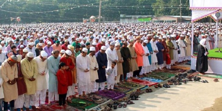 সকাল ৭টা ২২ মিনিটে শুরু হয় ঈদের প্রথম জামাতের মোনাজাত। ১২ মিনিটব্যাপী চলা মোনাজাতে আল্লাহর কাছে দু’হাত তুলে দোয়া করেন ছোট-বড় সব বয়সী মুসল্লিরা।
