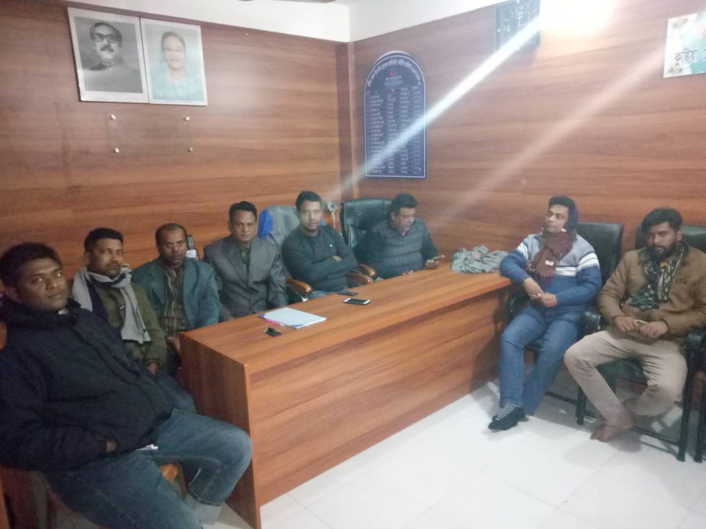 কুষ্টিয়া জেলা রিপোর্টার্স ক্লাবের উদ্যোগে গতকাল মঙ্গলবার সন্ধা ৭:৩০ মিনিটে জরুরী সভা অনুষ্ঠিত হয়েছে। কুষ্টিয়া জেলা রিপোর্টার্স ক্লাবের বি.সি স্ট্রীট বাবর আলী গেটের নিজস্ব কার্যালয়ে কুষ্টিয়া জেলা রিপোর্টার্স ক্লাবের সভাপতি ও সাপ্তাহিক রবি বার্তার সম্পাদক ডাঃ গোলাম মওলার সভাপতিত্বে উক্ত জরুরি সভা অনুষ্ঠিত হয়। কুষ্টিয়া জেলা রিপোর্টার্স ক্লাবের সভাপতি ডাঃ গোলাম মওলা উক্ত সভায় বলেন ,বাংলাদেশ স্বাধীনের পরে সব থেকে বেশি উন্নয়ন মাননীয় প্রধানমন্ত্রী শেখ হাসিনার আমলে সম্পর্ন হয়েছে এবং কুষ্টিয়া সদর(৩) অসনের রুপকার জনাব মাহাবুবুল আলম হানিফের উন্নয়ন ইতিহাসের পাতায় লেখা থাকবে তাই দল মত ভুলে নৌকার পক্ষে কাজ করার আহবান জানান।