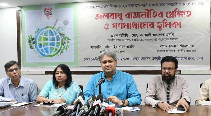আজ শনিবার বিশ্ব মুক্ত গণমাধ্যম দিবস ২০২৪ উপলক্ষে জাতীয় প্রেস ক্লাব আয়োজিত “জলবায়ু রাজনীতির প্রেক্ষিত ও গণমাধ্যমের ভূমিকা” শীর্ষক এক আলোচনা সভায় তিনি এসব কথা বলেন। তিনি আরো বলেন, পরিবেশ সুরক্ষার স্বার্থে যে সকল সাংবাদিক কাজ করে যাচ্ছেন তারা যদি কোন প্রভাবশালী মহল দ্বারা আক্রান্ত হন সরকার সেক্ষেত্রে যথাযথ ব্যবস্থা নেবে।