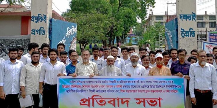 রোববার সকালে শহরের কাঁটায় খানা মোড় এলাকায় পলিটেকনিক ইনস্টিটিউট চত্বরে ইনস্টিটিউশন অব ডিপ্লোমা ইঞ্জিনিয়ার্স, বাংলাদেশ (আইডিইবি) কুষ্টিয়া শাখার উদ্যোগে মানববন্ধন ও স্মারকলিপি প্রদান করা হয়।
