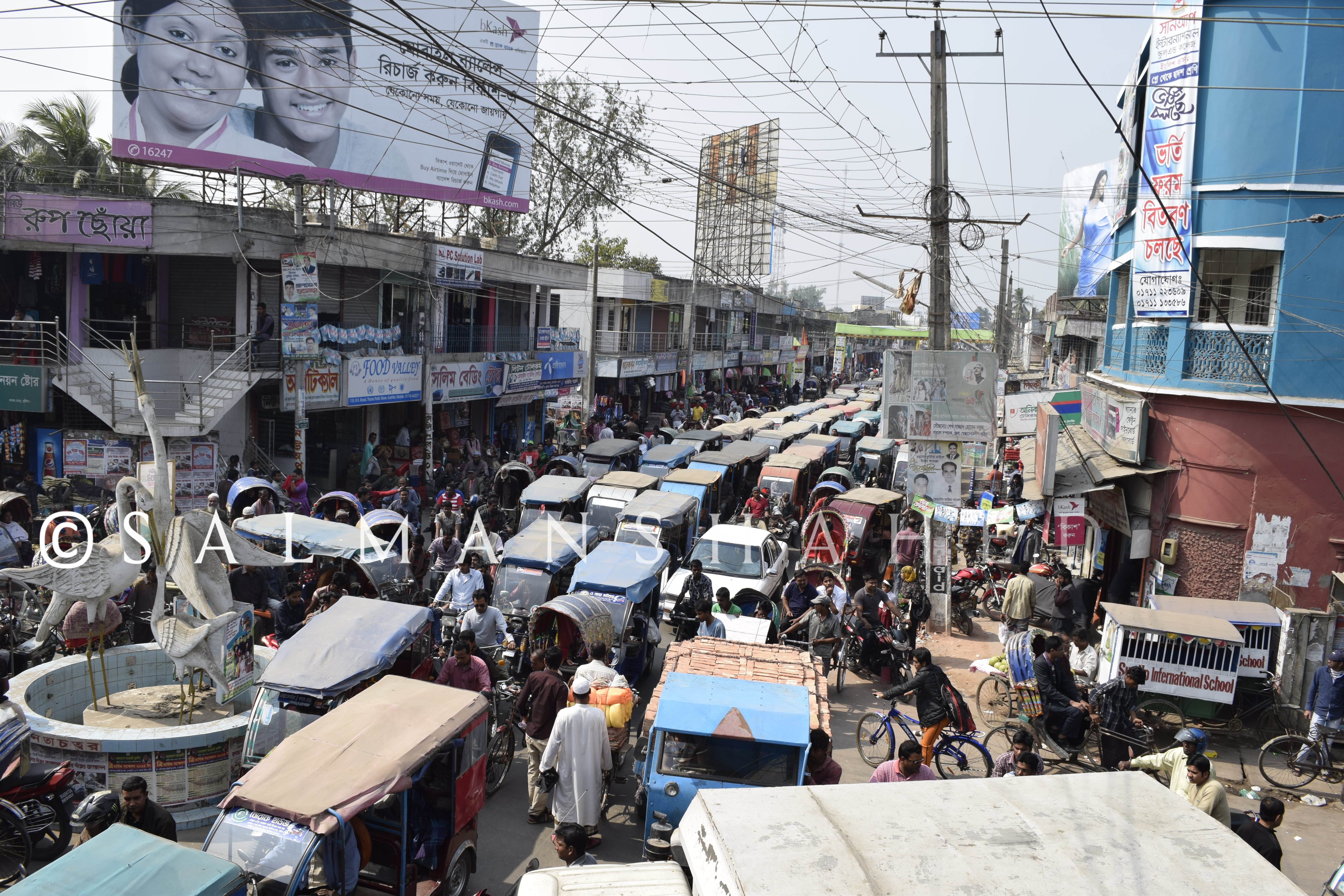 সরেজমিন ঘুরে দেখা গেছে, শহরের সবচেয়ে বেশি ইজ বাইক জট লাগে তিনটা রুটে। সেগুলো হলো, মজমপুর থেকে এনএস রোড হয়ে বড় বাজার, থানমোড় থেকে মোল্লাতেঘরিয়া ও পলিটেকনিক থেকে কলেজ ও হাসপাতাল মোড় হয়ে সাদ্দাম বাজার পর্যন্ত। এই তিন সড়কে মোট পাঁচ কিলোমিটারে দুই হাজারের বেশি ইজিবাইক চলাচল করে। আমিন ফার্মেসি মোড়, হাসপাতাল মোড় ও কোর্টস্টেশন মোড়ে সকালে ও বিকালে সবেচেয়ে বেশি জট বাঁধে। এ ছাড়া শহরের মাঝে একাধিক স্টেশন ও রেলগেট থাকায় যানজটের মাত্রা দিনদিন ভয়াবহ রূপ ধারণ করছে। একটি সূত্র জানিয়েছে, পৌর কর্তৃপক্ষ প্রয়োজনের অতিরিক্ত ইজিবাইক চালানো বন্ধে কোনো উদ্যোগ নেয় না।