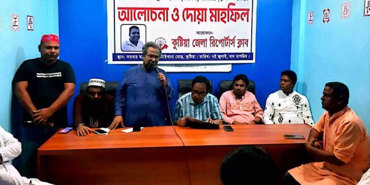 আজ রোববার (৭ জুলাই) বাদ মাগরিব কুষ্টিয়া কাটাইখানা মোড়ের সমবায় মার্কেট-৩ এর দ্বিতীয় তলায় কুষ্টিয়া জেলা রিপোর্টার্স ক্লাবের আয়োজনে প্রয়াত সাংবাদিক হাসিবুর রহমান রুবেলের দ্বিতীয় মৃত্যুবার্ষিকী উপলক্ষে আলোচনা সভা ও দোয়া মাহফিল অনুষ্ঠিত হয়।