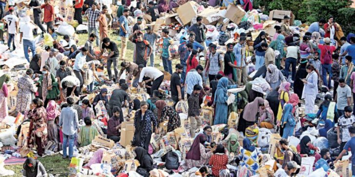 বৈষম্যবিরোধী ছাত্র আন্দোলনের সহসমন্বয়ক মো. মহিউদ্দিন গতকাল বিকেলে এক ব্রিফিংয়ে বলেন, ‘গত দুই দিনে আমরা সাধারণ মানুষের কাছ থেকে অসাধারণ সাড়া পেয়েছি। মানুষ তাদের সাধ্য অনুযায়ী যে যা পারছে দান করছে। আজ (শনিবার) ভোররাত পর্যন্ত আমরা ২৫ ট্রাক ত্রাণসামগ্রী পাঠাতে পেরেছি। এরই মধ্যে টিএসসির ক্যাফেটেরিয়া, গেমস রুম ও বারান্দাগুলো ত্রাণসামগ্রীতে ভরে গেছে। আজ রাতে ডজনখানেক ট্রাক বিভিন্ন বন্যাকবলিত এলাকায় রওনা হবে।’