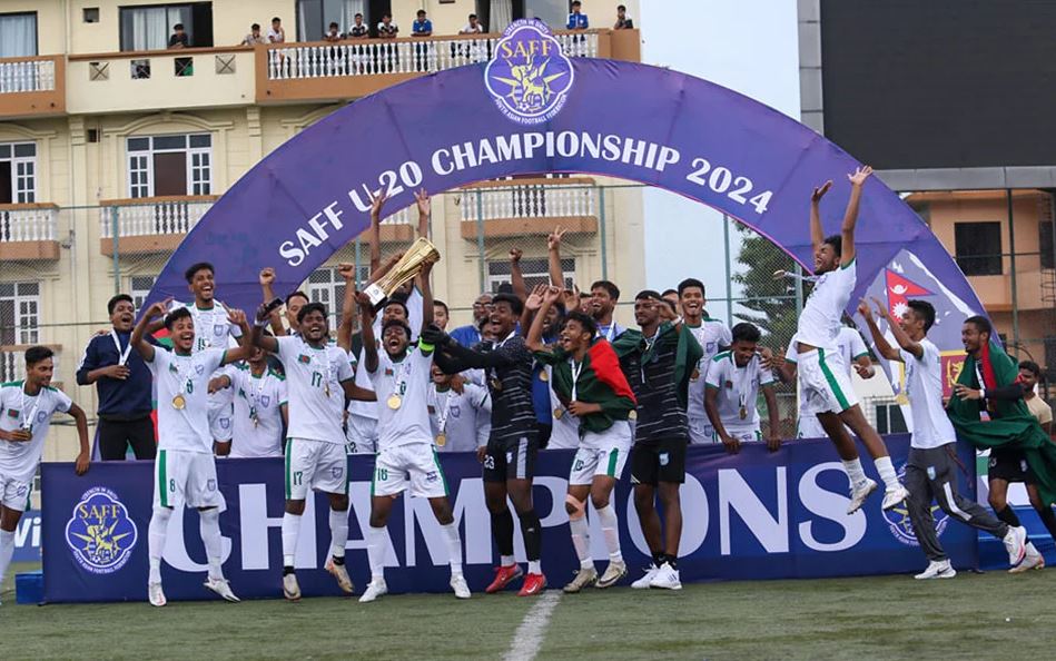 আর তাতেই নেপালে আরেকবার উড়ল লাল-সবুজের পতাকা। স্বাগতিক দলকে ৪-১ গোলে হারিয়ে অনূর্ধ্ব-২০ সাফের শিরোপা জিতল বাংলাদেশ। গত আসরে ফাইনালে স্বপ্ন ভঙ্গ হলেও এবার শিরোপা নিয়েই ফিরছেন যুবারা।