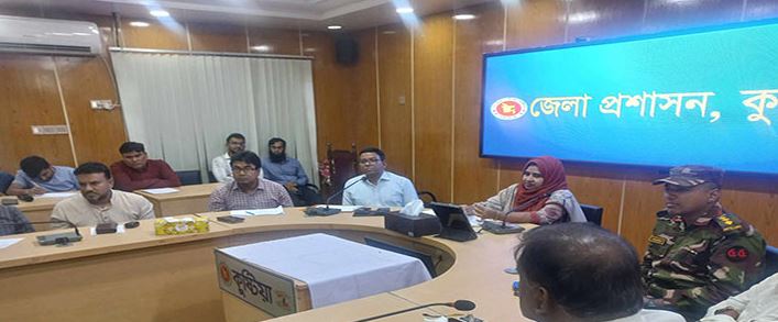 ভারপ্রাপ্ত জেলা প্রশাসক মোছা. শারমিন আখতারের সভাপতিত্বে বৈঠকে অংশ নেন জেলা বাস মিনিবাস ও মাইক্রোবাস শ্রমিক ইউনিয়নের সভাপতি মাহবুল আলম, জেলা বাস মিনিবাস মালিক গ্রুপের সাধারণ সম্পাদক আবুল ফজল সেলিম, মিরপুর সিএনজি মালিক সমিতির সভাপতি মহিবুল হক, জেলা বিএনপির সাধারণ সম্পাদক ও কুষ্টিয়া সদর আসনের সাবেক এমপি অধ্যক্ষ সোহরাব উদ্দিন, জেলা বিএনপির যুগ্ম সম্পাদক প্রকৌশলী জাকির হোসেন সরকার, মিরপুর উপজেলা বিএনপির সভাপতি আব্দুল হক, বৈষম্যবিরোধী ছাত্র আন্দোলনের কুষ্টিয়ার সমন্বয়ক তৌকির আহমেদ প্রমুখ।