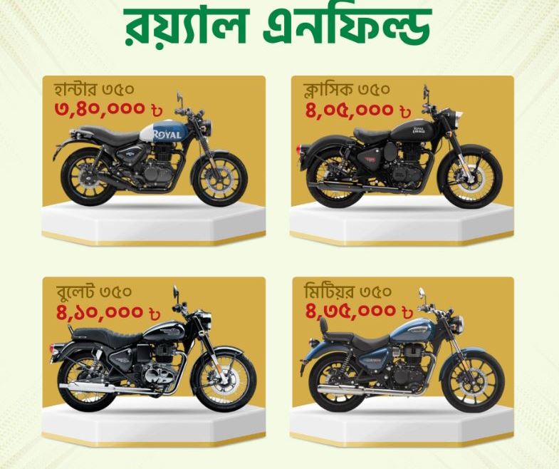 মোটরসাইকেল ব্র্যান্ডটির বাংলাদেশি পরিবেশক ইফাদ মোটরস চারটি ৩৫০ সিসির রয়্যাল এনফিল্ড উন্মোচন করেছে। মডেল চারটি হলো- হান্টার, ক্লাসিক, বুলেট ও মিটিওর।