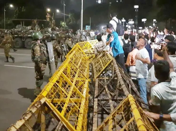 মঙ্গলবার রাত সাড়ে ৮টার দিকে এ ঘটনা ঘটে। সংবাদ লেখার সময়ও (রাত ৯টা) আন্দোলনকারীরা স্লোগান দিয়ে বঙ্গভবনে প্রবেশের চেষ্টা করছিলেন।