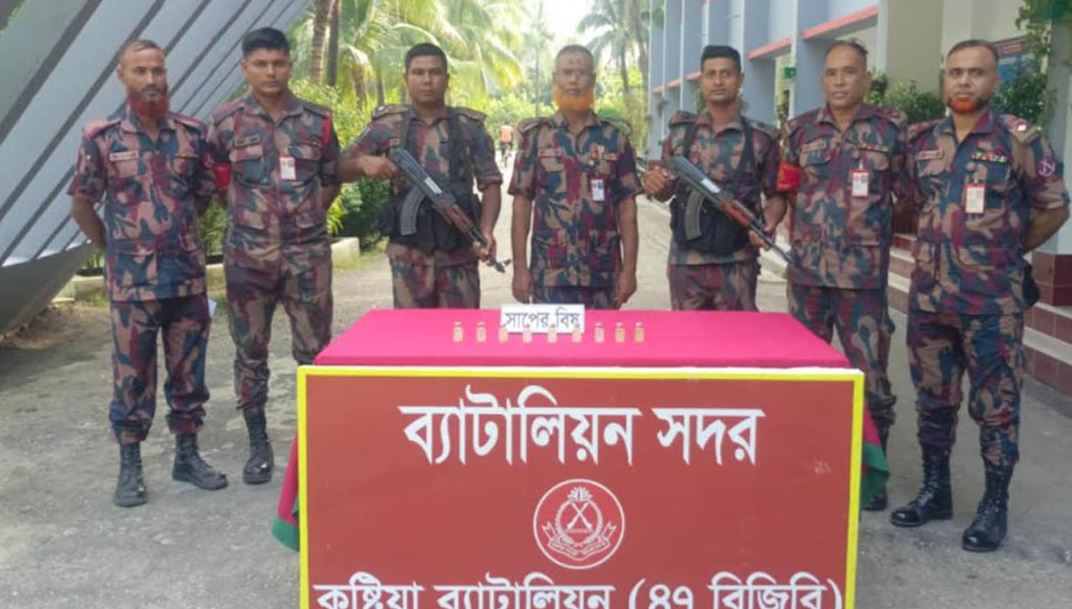 সোমবার রাত সাড়ে ১১টায় কুষ্টিয়া বিজিবির ৪৭ ব্যাটালিয়নের অধিনায়ক লেফটেন্যান্ট কর্নেল মাহাবুব মুর্শেদ রহমান এক সংবাদ বিজ্ঞপ্তিতে এসব তথ্য জানান।