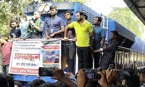 সুন্দরবন ও বেনাপোল এক্সপ্রেস ট্রেনের রুট পরিবর্তনের সিদ্ধান্ত বাতিল এবং কুষ্টিয়া স্টেশন দিয়ে নিয়মিত ট্রেন চলাচলের দাবিতে বিক্ষোভ করেছেন কুষ্টিয়ার মানুষ।