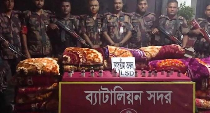 কুষ্টিয়ায় একটি যাত্রীবাহী ট্রেনে তল্লাশি চালিয়ে ২১ বোতল লাইসার্জিক অ্যাসিড ডাইইথ্যালামাইড (এলএসডি) মাদক জব্দ করেছে বর্ডার গার্ড বাংলাদেশ বিজিবি। এসময় ১৯ পিস ভারতীয় কম্বলও জব্দ হয়।