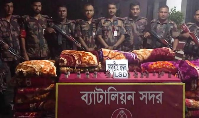 কুষ্টিয়ায় একটি যাত্রীবাহী ট্রেনে তল্লাশি চালিয়ে ২১ বোতল লাইসার্জিক অ্যাসিড ডাইইথ্যালামাইড (এলএসডি) মাদক জব্দ করেছে বর্ডার গার্ড বাংলাদেশ বিজিবি। এসময় ১৯ পিস ভারতীয় কম্বলও জব্দ হয়।