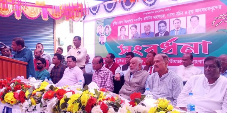 কুষ্টিয়া জেলা বিএনপির নব গঠিত কমিটির আহবায়ক কুতুব উদ্দিন আহমেদ বলেন, বিগত ফ্যাসিবাদ সরকারের সময় সাংবাদিকরা সত্য খবর লিখতে পারেনি। ফ্যাসিবাদী সরকারের পতন ও তাদের দমন-পিড়ন ,অন্যায়-অত্যাচার ছাত্র-জনতার আন্দোলনের মুখে বিলীন হয়ে গেছে। সাংবাদিকরা এখন স্বাধীন। তাদের লেখনী-চর্চার ক্ষেত্র অবাধ ও উন্মুক্ত। বিএনপির কেউ হাট-ঘাট দখল,টেন্ডারবাজি ও বালু উত্তোলনের সাথে জড়িত নয়। দেশ গঠনে যেমন রাজনৈতিক দলের ভুমিকা থাকে তেমনি সাংবাদিকদেরও অবদান যথেষ্ট। কারা ওই অপকর্মের সাথে জড়িত সাংবাদিকদের তা খুজে বের করতে হবে। আমরা অন্যায়-অপকর্মে জড়িত নই। সত্য খবর প্রকাশিত হলে দেশের মানুষ উপকৃত হবে। গতকাল শনিবার সকালে জেলা বিএনপির নব গঠিত আহবায়ক কমিটির নেতাদের ঐতিহ্যবাহী কুষ্টিয়া জেলা প্রেস ক্লাব ও জাতীয়তাবাদী সাংবাদিক ফোরামের যৌথ উদ্যোগে আয়োজিত সংবর্ধনা অনুষ্ঠানে এসব কথা বলেন।