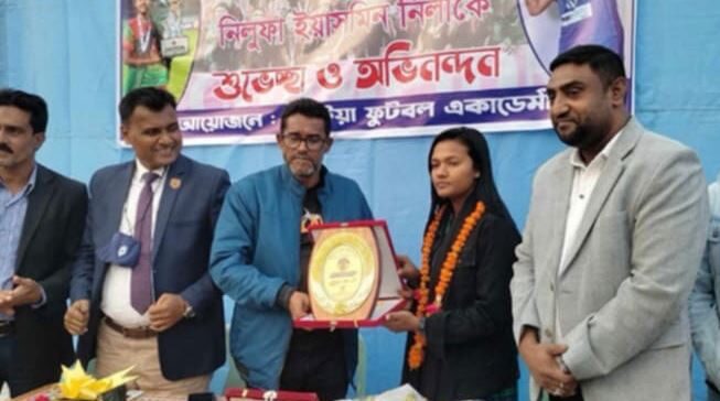নেপালকে হারিয়ে টানা দ্বিতীয়বারের মতো সাফ নারী চ্যাম্পিয়ন হয়েছে বাংলাদেশ। চ্যাম্পিয়ন দলের অন্যতম সদস্য নিলুফা ইয়াসমিন নীলা। এবার তার নিজ জেলা কুষ্টিয়া ফুটবল একাডেমির পক্ষ থেকে তাকে সংবর্ধনা দেওয়া হয়েছে।