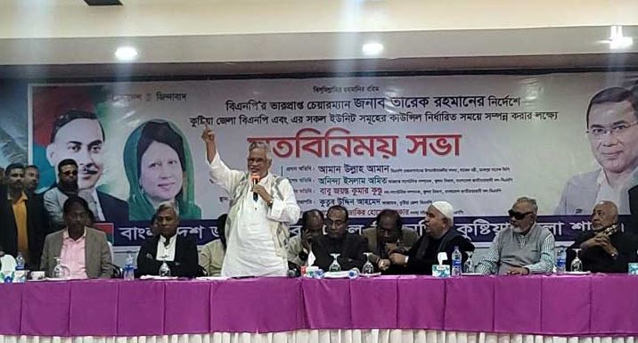কুষ্টিয়া জেলা বিএনপির আহ্বায়ক কুতুব উদ্দিন আহমেদের সভাপতিত্বে মতবিনিময় সভায় বিশেষ অতিথি ছিলেন খুলনা বিভাগীয় বিএনপির ভারপ্রাপ্ত সাংগঠনিক সম্পাদক অনিন্দ্য ইসলাম অমিত।