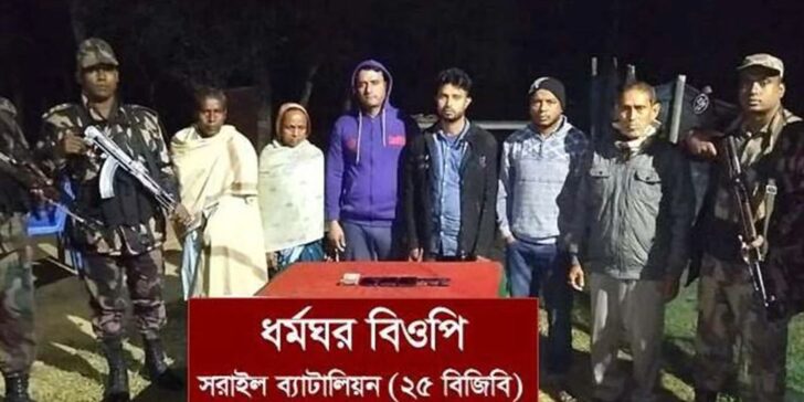 হবিগঞ্জের মাধবপুরে অবৈধভাবে ভারতে অনুপ্রবেশের চেষ্টাকালে নারীসহ ৬ জনকে আটক করেছে বর্ডার গার্ড বাংলাদেশ (বিজিবি)। রবিবার (১৫ ডিসেম্বর) রাত সাড়ে ৮টায় সরাইল ব্যাটালিয়নের (২৫ বিজিবি) ধর্মঘর বিওপির একটি টহল দল উপজেলার ধর্মঘর ইউনিয়নের সীমান্তবর্তী সস্তামোড়া এলাকায় অভিযান চালিয়ে অনুপ্রবেশের চেষ্টা কালে তাদেরকে আটক করে।