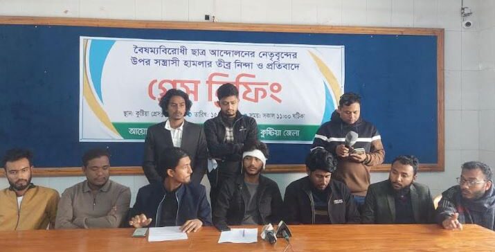 এদিকে, হামলার ঘটনায় রবিবার (১৫ ডিসেম্বর) সংবাদ সম্মেলন করেছে বৈষম্যবিরোধী ছাত্র আন্দোলনের নেতারা। তারা হামলায় জড়িতদের গ্রেপ্তার ও দৃষ্টান্তমূলক শাস্তির দাবি জানিয়েছেন। দুপুর ১২টায় কুষ্টিয়া প্রেস ক্লাবে এ সংবাদ সম্মেলন অনুষ্ঠিত হয়