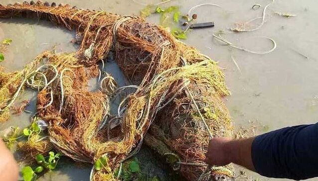 কুষ্টিয়ায় পদ্মা নদীতে মাছ ধরার জালে ১১ ফুট লম্বা একটি কুমির আটকা পড়েছে। কুমিরটি একনজর দেখতে উৎসুক মানুষ ভিড় করেন।