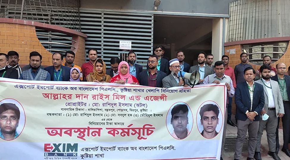 কুষ্টিয়ায় ঋণখেলাপির বাড়ির সামনে ব্যাংক কর্মকর্তাদের অবস্থান