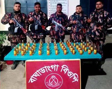 সোমবার (২০ জানুয়ারি) ভোরে উপজেলার বাঘাডাঙ্গা সীমান্ত থেকে এ মদ জব্দ করা হয়।