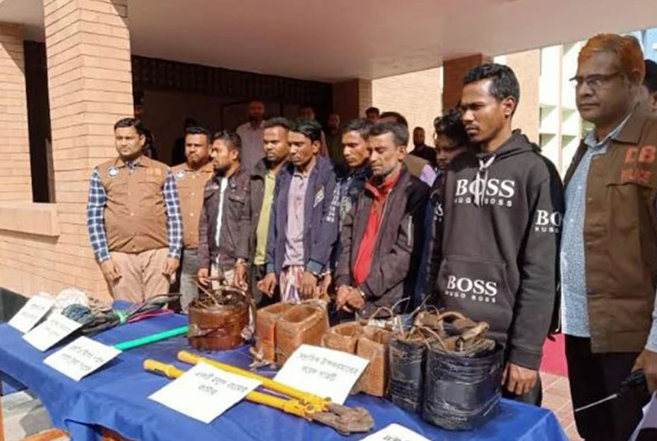নাটোর সদর উপজেলায় চুরির কাজে ব্যবহৃত একটি পিকআপসহ বৈদ্যুতিক ট্রান্সফরমার চোর চক্রের ৭ সদস্যকে গ্রেফতার করেছে ডিবি পুলিশ। বৃহস্পতিবার ভোর ৬টার দিকে নাটোর শহরের বনবেলঘরিয়া বাইপাস এলাকায় চেকপোস্ট বসিয়ে তল্লাশি চালিয়ে তাদের গ্রেফতার করা হয়। এসময় ৪টি বৈদ্যুতিক ট্রান্সফরমারের ৭টি তামার কয়েল, একটি হলুদ রংয়ের কাটার, একটি প্লাস্টিকের পাইপ (বৈদ্যুতিক ফেইজ ফেলার কাজে ব্যবহৃত), ২টি লোহার রড, দড়ি ও তার জব্দ করা হয়। বৃহস্পতিবার বেলা দুপুর ২টার দিকে পুলিশ সুপারের কার্যালয়ে আয়োজিত প্রেসব্রিফিংয়ে বিষয়টি নিশ্চিত করেন পুলিশ সুপার মারুফাত হোসাইন।