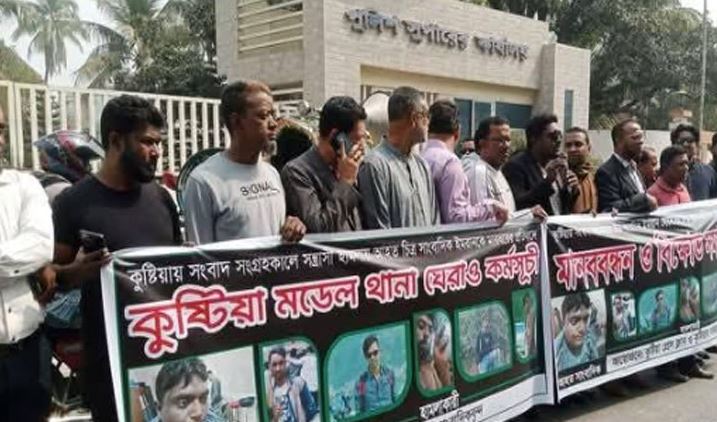 এদিকে, ঘটনার পর ২৪ ঘণ্টা অতিবাহিত হলেও হামলাকারীদের কাউকে গ্রেপ্তার করতে পারেনি পুলিশ। এতে ক্ষুব্ধ সাংবাদিকরা কুষ্টিয়া পুলিশ সুপারের কার্যালয়ের সামনে সোমবার (১৭ ফেব্রুয়ারি) সকাল ১১টার দিকে মানববন্ধন ও অবস্থান কর্মূসূচি পালন করেন। হামলাকারীদের আটকে ৪৮ ঘণ্টার আল্টিমেটাম দেন সাংবাদিক নেতারা।