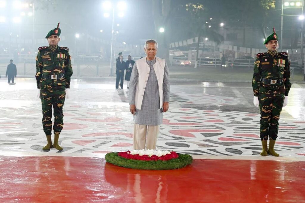 অন্তর্বর্তী সরকারের প্রধান উপদেষ্টা ড. মুহাম্মদ ইউনূস রাত ১২টা ১২ মিনিটে কেন্দ্রীয় শহীদ মিনারে পুষ্পস্তবক অর্পণ করে শ্রদ্ধা নিবেদন করেন।