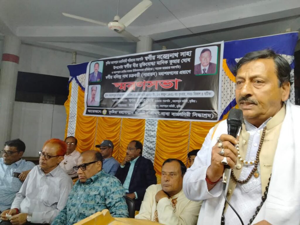 কুষ্টিয়া মহাশ্মশান কার্যনির্বাহী পরিষদের সভাপতি স্বর্গীয় নরেন্দ্রনাথ সাহা উপদেষ্টা, স্বর্গীয় বীর মুক্তিযোদ্ধা মানিক কুমার ঘোষ ও মহাশ্মশান হোমিও দাতব্য চিকিৎসালয়ের প্রতিষ্ঠাতা সাবেক ভারপ্রাপ্ত সভাপতি স্বর্গীয় মনিন্দ্র নাথ চক্রবর্তী {নারায়ণ} মহাশয়গণের প্রয়াণে স্মরণসভা অনুষ্ঠিত।