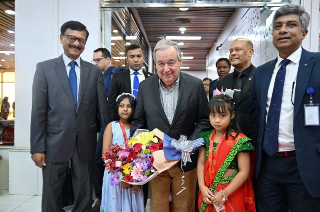 বৃহস্পতিবার বিকালে তিনি ঢাকার হযরত শাহজালাল আন্তর্জাতিক বিমানবন্দরে পৌঁছান। তাকে স্বাগত জানান পররাষ্ট্র উপদেষ্টা তৌহিদ হোসেন। জাতিসংঘ মহাসচিবের হাতে ফুল তুলে দেয় শিশুরা।