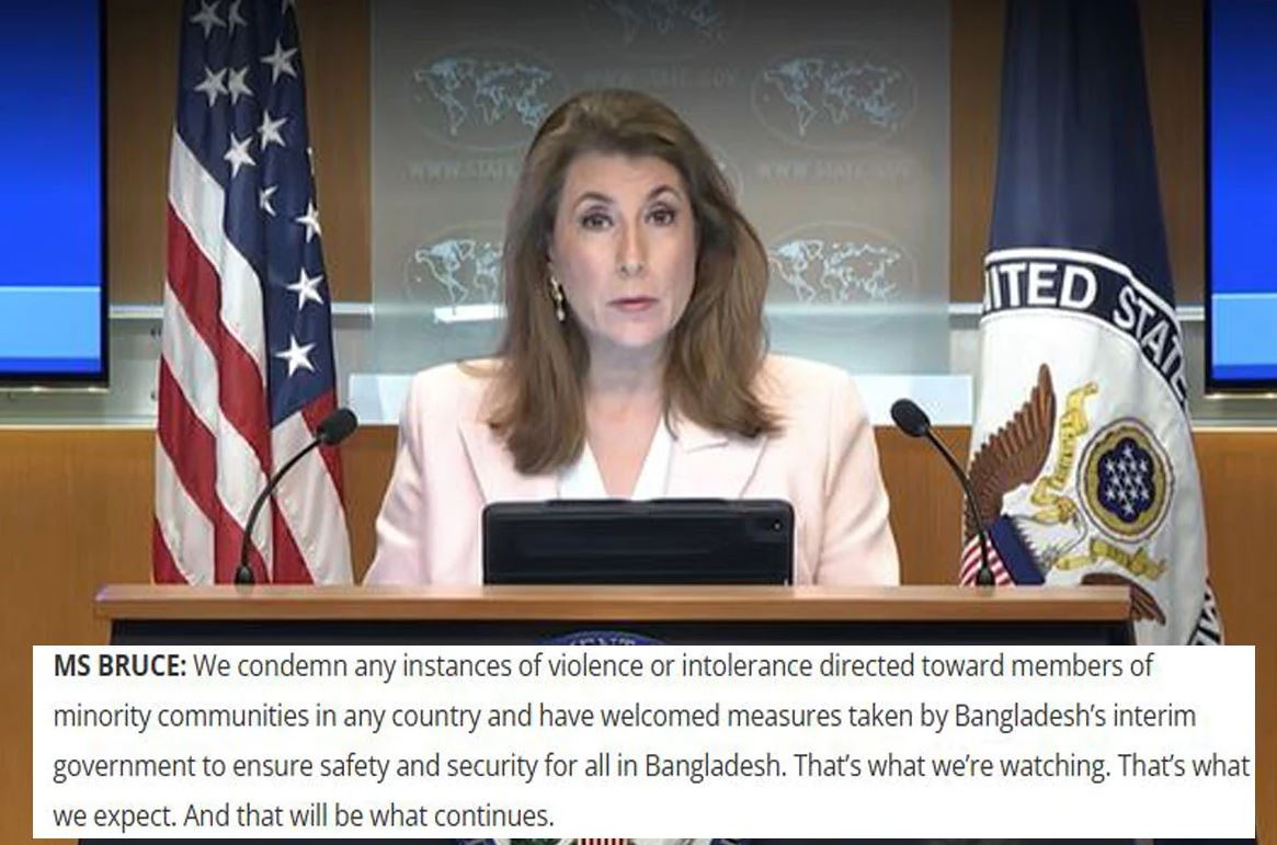 বাংলাদেশে সংখ্যালঘুদের সুরক্ষা ও নিরাপত্তা নিশ্চিত করতে অন্তর্বর্তী সরকারের নেওয়া পদক্ষেপকে স্বাগত জানিয়েছে মার্কিন যুক্তরাষ্ট্র।