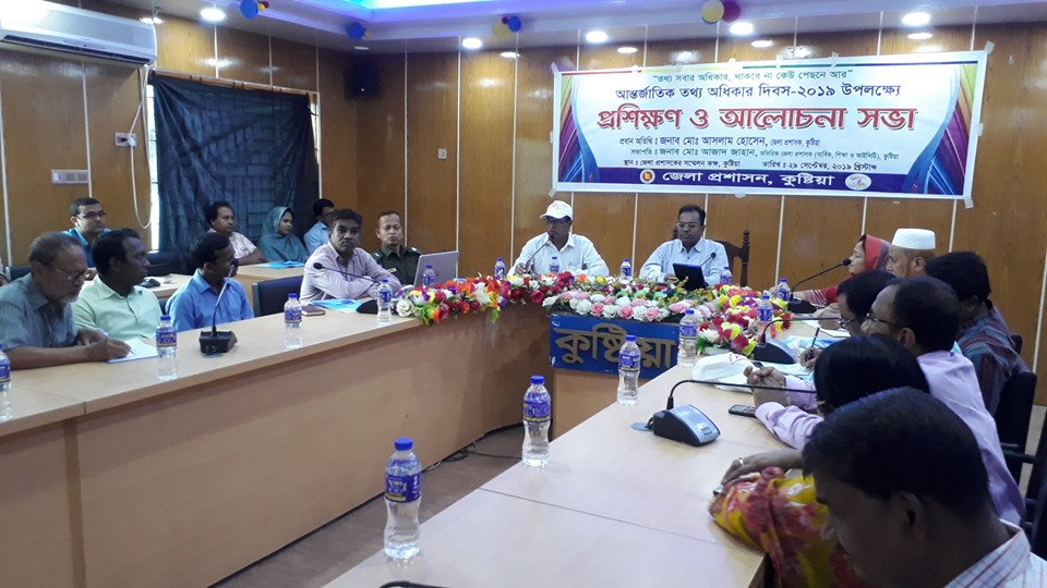 কুষ্টিয়া প্রতিনিধি : কুষ্টিয়া জেলার সকল পর্যায়ে চলমান উন্নয়ন প্রকল্প এবং অফিস কার্যালয়ের তথ্য অবমুক্ত করণের নির্দেশনা দিয়ে জেলা প্রশাসক মো: আসলাম হোসেন বলেন, আজকের বিশে^ তথ্যই শক্তি। তিনি বলেন আরো, তথ্য জানার অধিকার নাগরিকের আইনগত অধিকার। সুশাসন, স্বচ্ছতা এবং জবাবদিহিতা নিশ্চিতের অন্যতম হাতিয়ারই হলো অবাধ তথ্য প্রবাহ। বর্তমান সরকার তথ্য অধিকার আইন বাস্তবায়নে নানাবিধ কার্যক্রম উল্লেখ করে বলেন, সরকারি ঘোষিত লক্ষ্যমাত্রা ২০২১ এবং ২০৪১ অর্জন সহ টেকসই উন্নয়ন লক্ষ্যমাত্রা অর্জন করতে হলে তথ্যের অবাধ প্রবাহ তৈরী করতে হবে। তিনি বলেন, অবাধ তথ্য প্রবাহই জবাবদিহিতার সংস্কৃতি তৈরী করতে পারে। অবাধ তথ্য প্রবাহ নিশ্চিত করতে সকল অফিসে দায়িত্বপ্রাপ্ত তথ্য কর্মকর্তা নিয়োগ এবং জনস্বার্থে দৃশ্যমান স্থানে নাম ফলক টানানোসহ নিজ নিজ ওয়েবসাইটে নাম প্রকাশের জোর তাগিদ দেন।