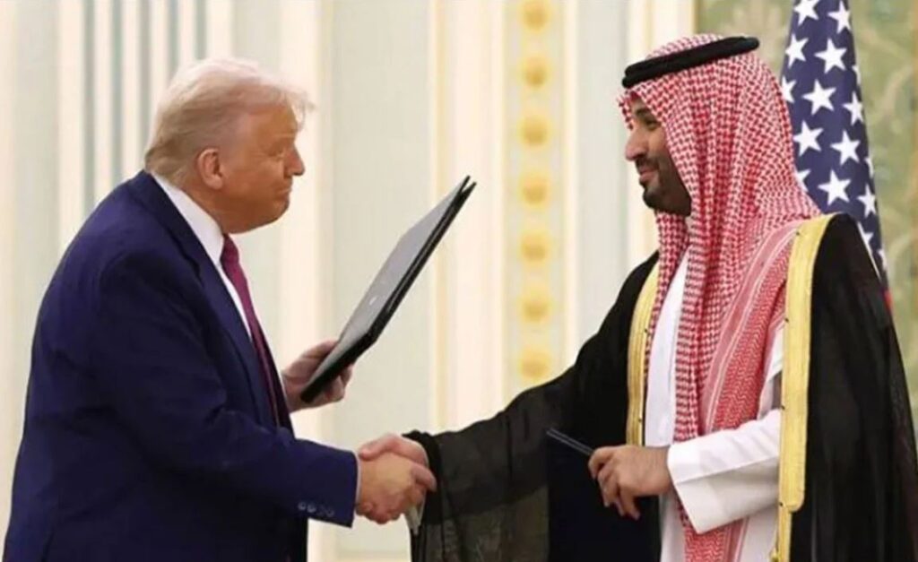 ডোনাল্ড ট্রাম্প ও মোহাম্মদ বিন সালমান যখন কৌশলগত অর্থনৈতিক অংশীদারিত্বে স্বাক্ষর করেছেন তখন অনুষ্ঠানস্থল ছিল করতালিতে মুখরিত।