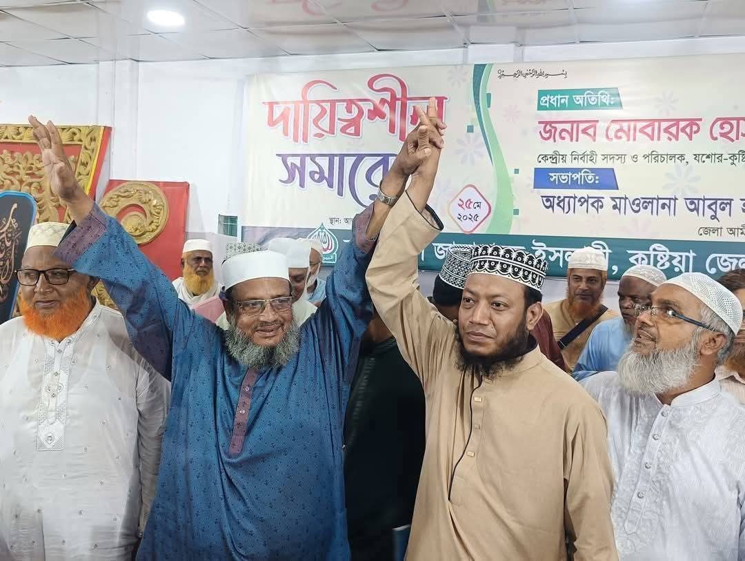 কুষ্টিয়া জেলা জামায়াতের আমীর অধ্যাপক আবুল হাশেম'র সভাপতিত্বে প্রধান অতিথি হিসাবে উপস্থিত ছিলেন কেন্দ্রীয় নির্বাহী সদস্য ও যশোর-কুষ্টিয়া অঞ্চলের পরিচালক মোবারক হোসেন।