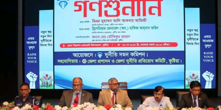 কুষ্টিয়া জেলা প্রশাসন ও জেলা দুর্নীতি প্রতিরোধ কমিটির সহযোগিতায় দুর্নীতি দমন কমিশন এ গণশুনানির আয়োজন করে।