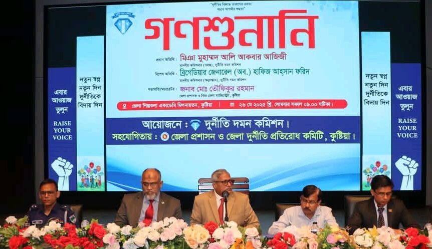 কুষ্টিয়া জেলা প্রশাসন ও জেলা দুর্নীতি প্রতিরোধ কমিটির সহযোগিতায় দুর্নীতি দমন কমিশন এ গণশুনানির আয়োজন করে।