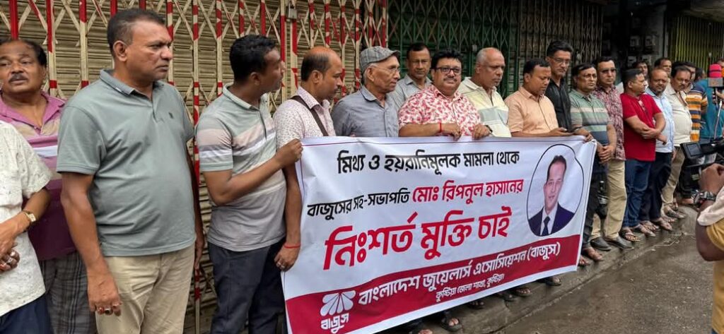 এদিকে, কুষ্টিয়ার একটি নামী জুয়েলারি দোকানের এক কর্মচারী নাম প্রকাশ না করার শর্তে বলেন, ‘আমাদের কোনো ব্যক্তিগত সমস্যা নেই, কিন্তু সংগঠনের নির্দেশে দোকান বন্ধ রাখতে হচ্ছে। যতদিন না সহ-সভাপতির মুক্তি হয়, আমরা দোকান খুলছি না।