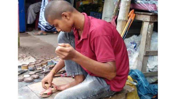 শুক্রবার সকালে জয়কে দেখা যায় বাজারের ফুটপাতে বসে জুতা সেলাই করতে।জয় জানায়, সকাল ১০টায় দোকান খুলে বিকেল চারটা পর্যন্ত কাজ করেছি। আয় হয়েছে ২৮০ টাকা। জুতা সেলাই ও রং করতে পারি, তবে জুতা বানাতে জানি না। শিখে নেব ধীরে ধীরে। সংসার চালাতে এখন প্রতিদিনই কাজ করতে হবে।কথা বলতে বলতে থেমে যায় জয়। চোখ ভিজে ওঠে। স্বপ্ন ছিল পড়াশোনা করে প্রতিষ্ঠিত হব। কিন্তু বাবার মৃত্যুর পর সব ভেঙে গেছে। সংসারের একমাত্র উপার্জনকারী ছিলেন বাবা। এখন মা, ঠাকুরমা আর দুই বোনকে নিয়ে সংসার চালাতে হবে আমাকে। আমার পড়াশোনা হবে কিনা জানি না, তবে দুই বোনকে পড়াতে চাই।