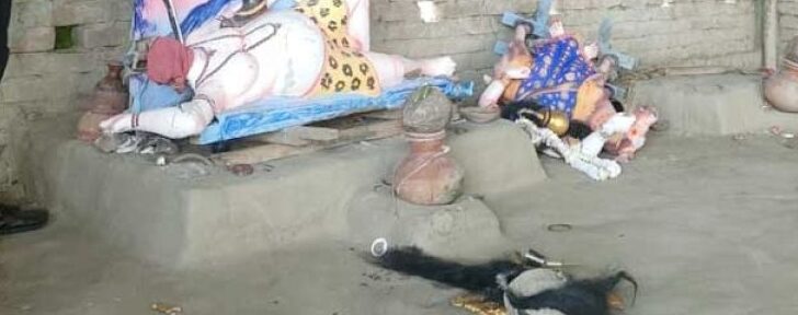 শুক্রবার গভীর রাতে অজ্ঞাত দুষ্কৃতিকারীরা মন্দিরে প্রবেশ করে দুটি মূর্তির হাত ও মাথা ভেঙে দেয়।