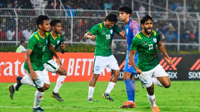 বাংলাদেশ-ভারত ম্যাচ ঘিরে পশ্চিমবঙ্গের সংবাদমাধ্যমে প্রকাশিত খবর দেখে মনে হচ্ছিল, সাদ-জীবনদের অন্তত এক হালি গোল দিতে সুনীল ছেত্রীরা আজ যুবভারতী ক্রীড়াঙ্গনে নামবেন। কোনো পত্রিকা তো এমনও হেডিং করেছে, ‘সুনীল ছুটলেই বাংলাদেশ হারিয়ে যাবে’! বাংলাদেশ হারিয়ে যায়নি। বরং বেশ প্রভাববিস্তার করা কৌশলী ফুটবল খেলছে, একটা সময় মনে হচ্ছিল, ভারতই হারিয়ে যাবে বাংলাদেশের সামনে! ৪২ মিনিটে জামাল ভূঁইয়ার সেট পিসে দুর্দান্ত এক হেডে সাদ উদ্দীন বল জড়িয়ে দেন ভারতের জালে। এ গোলে দর্শকে ঠাসা যুবভারতী স্টেডিয়ামে নেমে আসে অদ্ভুত নিস্তব্ধতা। হাজারো নীল জার্সির সমর্থকদের ভিড়ে হাতে গোনা কিছু লাল-সবুজের দর্শকদের চিৎকারই তখন অনেক জোরালো!