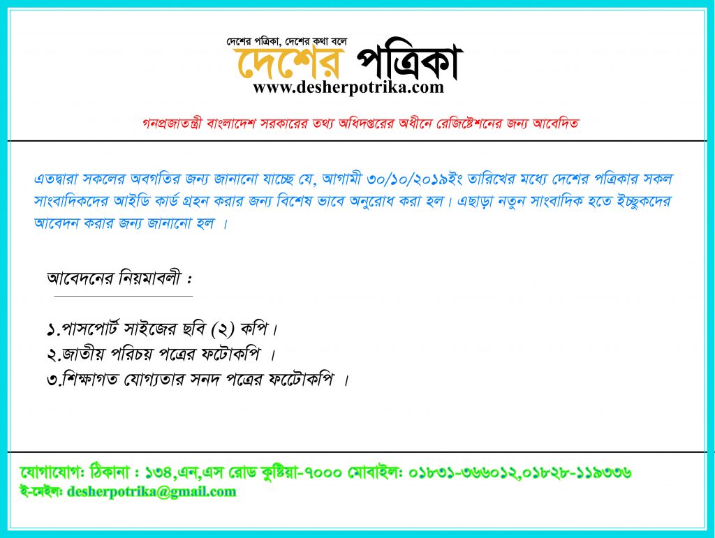 দেশের পত্রিকায় সাংবাদিক আবশ্যক ( বিস্তারিত নিম্নে দেওয়া হল )