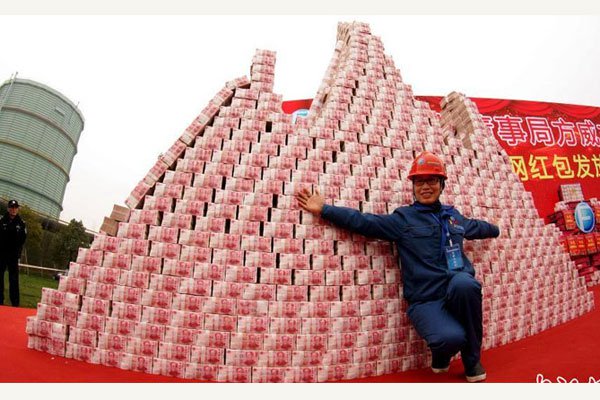 চীনের জিয়াংসি প্রদেশের নাংচাং শহরের এক ইস্পাত কোম্পানির এ ঘটনায় সামাজিক মাধ্যমে হইচই পড়েছে। কর্মীদের বোনাস দিতে ৩০ কোটি ইউয়ান (প্রায় ৩৭০ কোটি টাকা) দিয়ে পাহাড়টি গড়ে তারা।